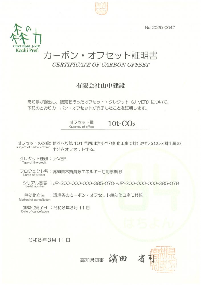 オフセット・クレジット(J-VER)を購入し、カーボン・オフセットが完了しました。
